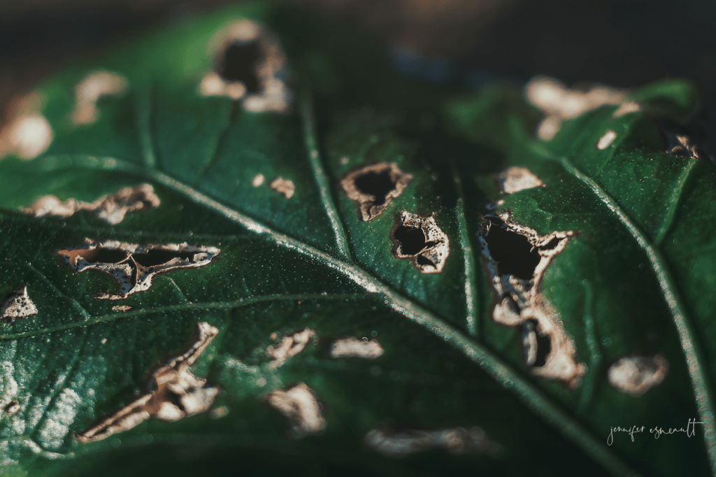 This image I took when playing with my macro lens. This leaf is decaying. Insects and time are taking their toll. But it’s still beautiful, even as it breaks down.