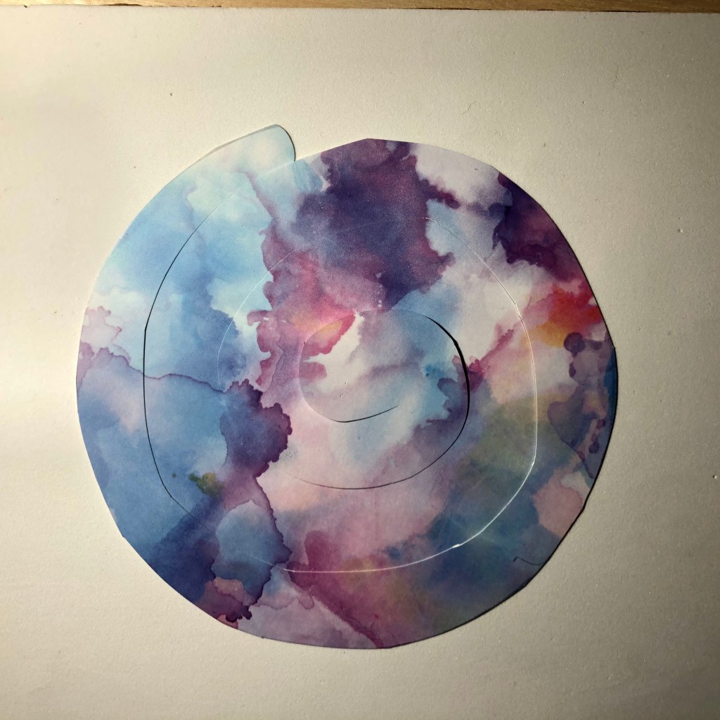 Step 2: Cut your circle into a spiral. Trim the sharp end into a rounded tip.