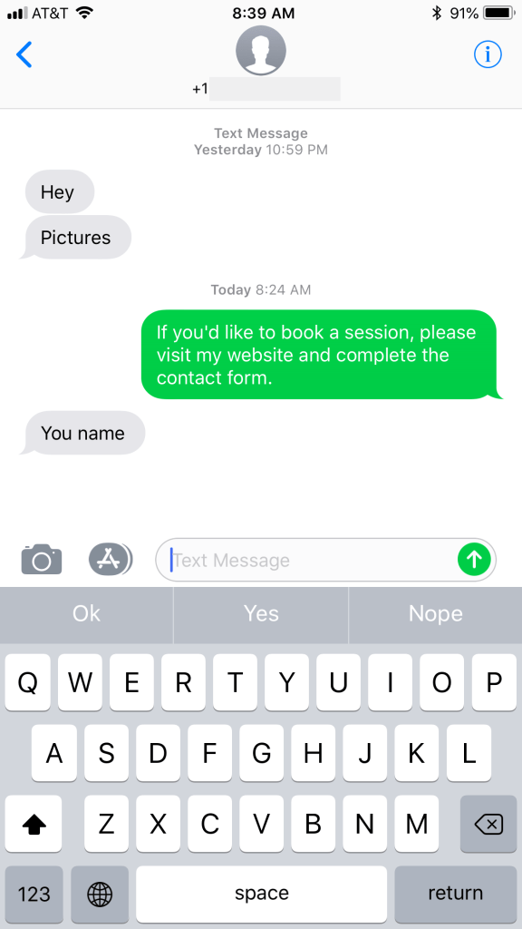 Honestly, I’m not sure this was even a scam. But it was weird. So so weird. Notice the time they first texted me. Also, I don’t publish my business phone number anywhere except Google, so to have my number, you would already have my name. Bye.