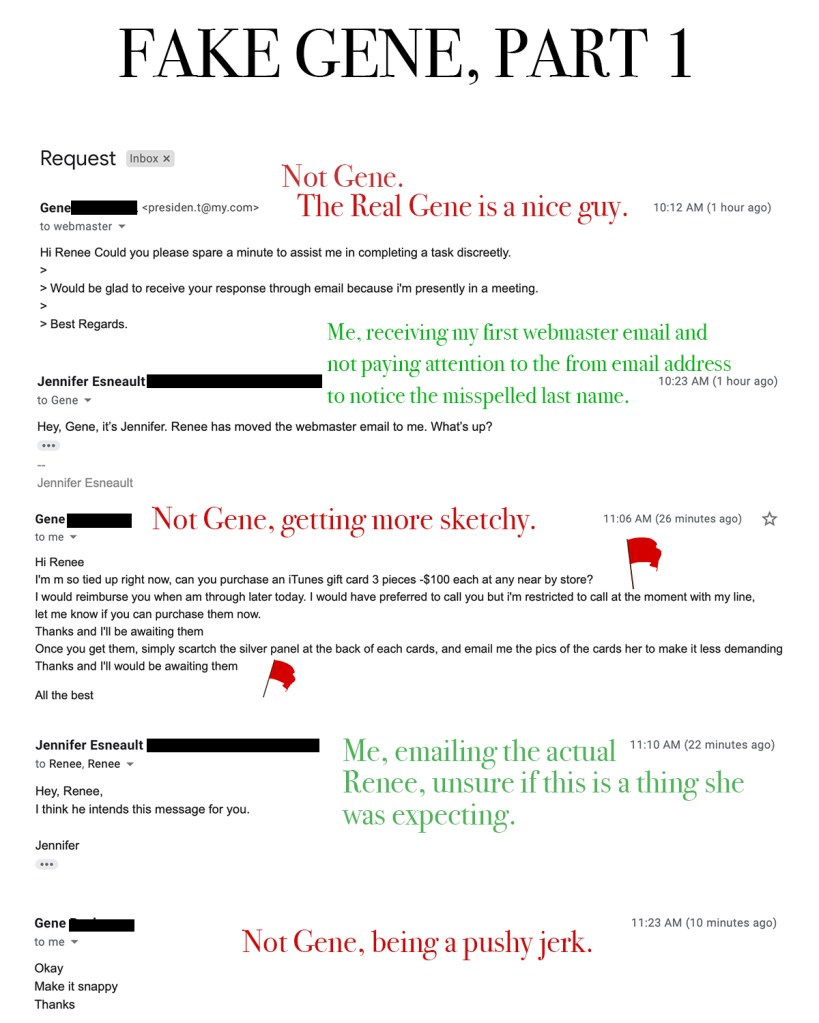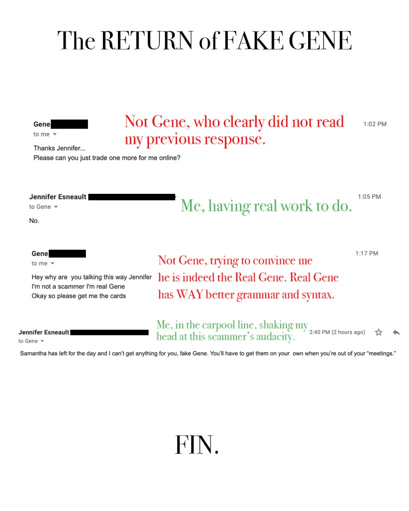 Apparently, both Gene’s and Renee’s names are floating around the dark web on a list linked to the webmaster email address that I have inherited as the new webmaster for our photography club. A mere 10 days after the Fake Gene I played his game, Fake Gene II hit my inbox.